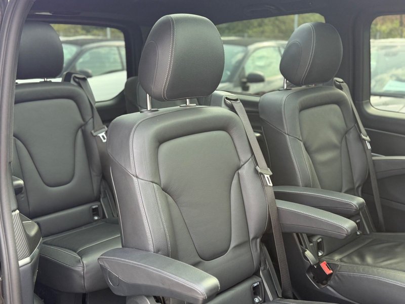 DAB-Tuner (Radioempfang digital), Dachreling (Aluminium eloxiert), Innenausstattung: Zierteile Carbon-Optik, Kindersitzerkennung im Beifahrersitz (automatisch), Kraftstofftank: vergrößert, LM-Felgen 8x19 (AMG, 7-Doppelspeichen, schwarz), Panorama-Schiebedach vorn elektrisch, mit Panoramadach hinten, Reserverad mit Wagenheber, Sitze im Fahrerhaus: Fahrer- und Beifahrersitz klimatisiert, Sitze im Fahrerhaus: Fahrersitz mit Lendenwirbelstütze, Sport-Fahrwerk, Tablet-Halterung im Fond, Zusatzheizung (Warmwasser), Ablagenetz an Vordersitzlehne links, Adaptives Bremslicht, Airbag Beifahrerseite, Airbag Fahrerseite, Ambiente-Beleuchtung, AMG-Line, Anfahrhilfe (Berganfahr-Assistent), Anhängerkupplung: Elektrik für Anhängersteckdose, Anzeige für Waschwasserstand, Audio-Navigationssystem: COMAND Online, Auflastung auf 3,1 t, Außenspiegel asphärisch, beide, Außenspiegel elektr. verstell- und heizbar, beide, Außenspiegel mit integrierter Blinkleuchte, Außentemperaturanzeige, Avantgarde Edition, Beleuchtung im Haltegriff Fond mit Lesespot, BlueEfficiency-Paket, Bodenbelag: Teppich im Fahrerraum, Bremsassistent, Bremssystem mit ABS+ASR, Design- und Ausstattungslinie Avantgarde Edition, Direktlenkung mit variabler Lenkkraft-Unterstützung, Einschaltautomatik für Fahrlicht, Einstiegsleisten mit Schriftzug Mercedes-Benz (beleuchtet), Einstiegsleuchten, Fahrassistenz-Paket, Fahrassistenz-System: Attention-Assist (Müdigkeitserkennungs-Sensor), Fahrassistenz-System: Fernlichtassistent Plus, Fahrassistenz-System: Pannenmanagement, Fahrassistenz-System: Seitenwind-Assistent, Fahrzeug Setup (Onlinedienste / Apps), Fahrzeug-Monitoring (Fahrzeugortungssystem), Fenster für hintere Türen / Heckklappe mit Wisch-/Waschanlage, Fenster im Lade-/FG-Raum: - feststehend, hinten, Fenster im Lade-/FG-Raum: - feststehend, vorn links, Fenster im Lade-/FG-Raum: - feststehend, vorn rechts, Feststellbremse elektrisch, Getriebe Automatik GTronic - (9-Stufen), Gurtstraffer, Haltegriffe im Fond, Handschuhfach abschließbar, Harnstofftank (AdBlue): 24 Ltr., Heckklappe mit automatischem Öffnungs- und Schließsystem, Heckscheibe aufstellbar, Heckscheibe heizbar, Intelligent Light System LED, Karosserie/Aufbau: Bus, Karosserie/Aufbau: lang, Kindersicherung, Klimaautomatik Fond (Tempmatik), Kombiinstrument mit Farbdisplay, Komfort-Klimaautomatik Thermotronik, Kommunikationsmodul Mercedes me connect (Internetbasierende Dienste), Kopf-Airbag-System (Windowbag), Kopf-Schulter-Airbag (Thoraxbag) Fahrer-/Beifahrerseite, Lenkrad (Lenksäule mech. verstellbar), Lenkrad mit Multifunktion inkl. Reiserechner, Mercedes-Benz Notrufsystem, Metallic-Lackierung, Mittelkonsole vorn mit Rollo / Ablage, Modellpflege, Motor 2,0 Ltr. - 176 kW CDI KAT, Park-Paket mit 360° Kamera, PKW-Zulassung, PTC Heater, Radstand 3200 mm, Reifendruck-Kontrollsystem, Schadstoffarm nach Abgasnorm Euro 6d-TEMP, Scheibenwischer mit Regensensor, Schiebetür Lade-/Fahrgastraum links, Schiebetür links elektrisch, Schiebetür rechts elektrisch, Sitzausstattung: Isofix-Kindersitz-System, Sitzausstattung: Schnellverriegelung für Sitzschienen-System, Sitzbezug / Polsterung: Leder Lugano, Sitze im Fahrerhaus: Fahrersitz heizbar, Sitze im Lade-/FG-Raum: 1.Reihe, 1 Einzelsitz links, Sitze im Lade-/FG-Raum: 1.Reihe, 1 Einzelsitz rechts, Sitze im Lade-/FG-Raum: 2.Reihe, 1 Einzelsitz links, Sitze im Lade-/FG-Raum: 2.Reihe, 1 Einzelsitz rechts, Sonnenblenden mit Spiegel (beleuchtet), Spiegel-Paket, Steckdosen (12V-Anschluß) im Lade-/Fahrgastraum, 2-fach, Stoßfänger / Stoßf.-Leiste seitlich + Griff an Heckklappe lackiert, Surround-System Burmester, Verglasung hinten abgedunkelt / Schwarzglas, Vlies-Batterie 92 Ah, Warmluftkanal zum Lade-/Fahrgastraum, Wartungsintervall-Anzeige Assyst, Wärmeschutzverglasung, Ambiente-Beleuchtung, Regensensor und vieles mehr...